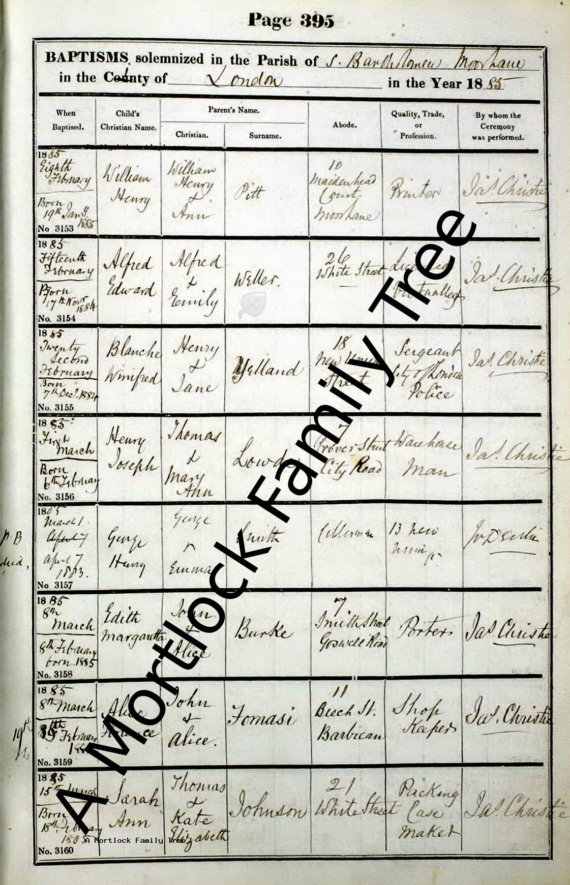 | Baptism | 15 March 1885 (Age 25 days) City of London, England Address: Saint Bartholomew By the Exchange |