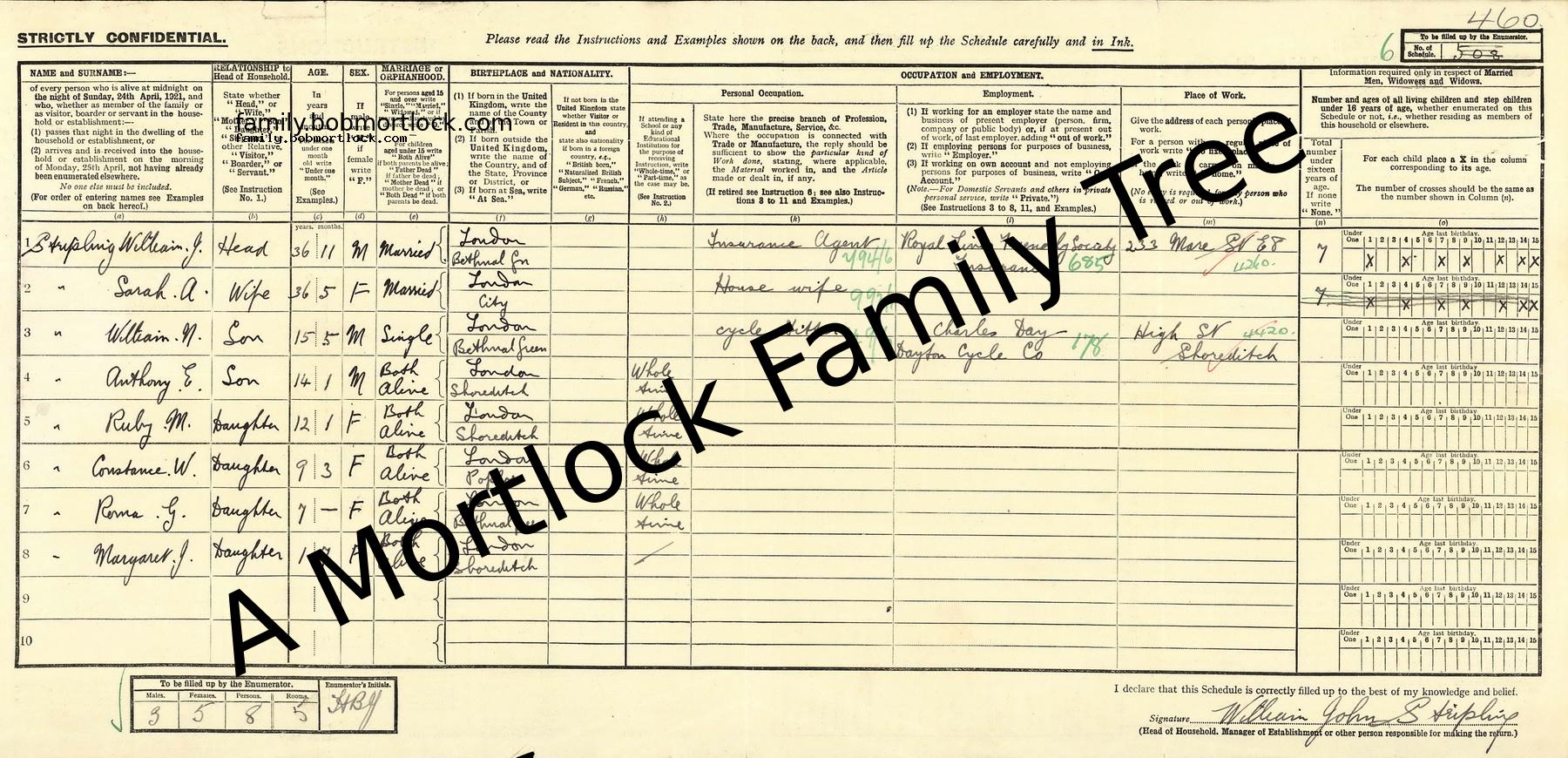 | Census | 19 June 1921 (Age 36) Shoreditch, E London, England Address: 14 Queens Road, Dalston