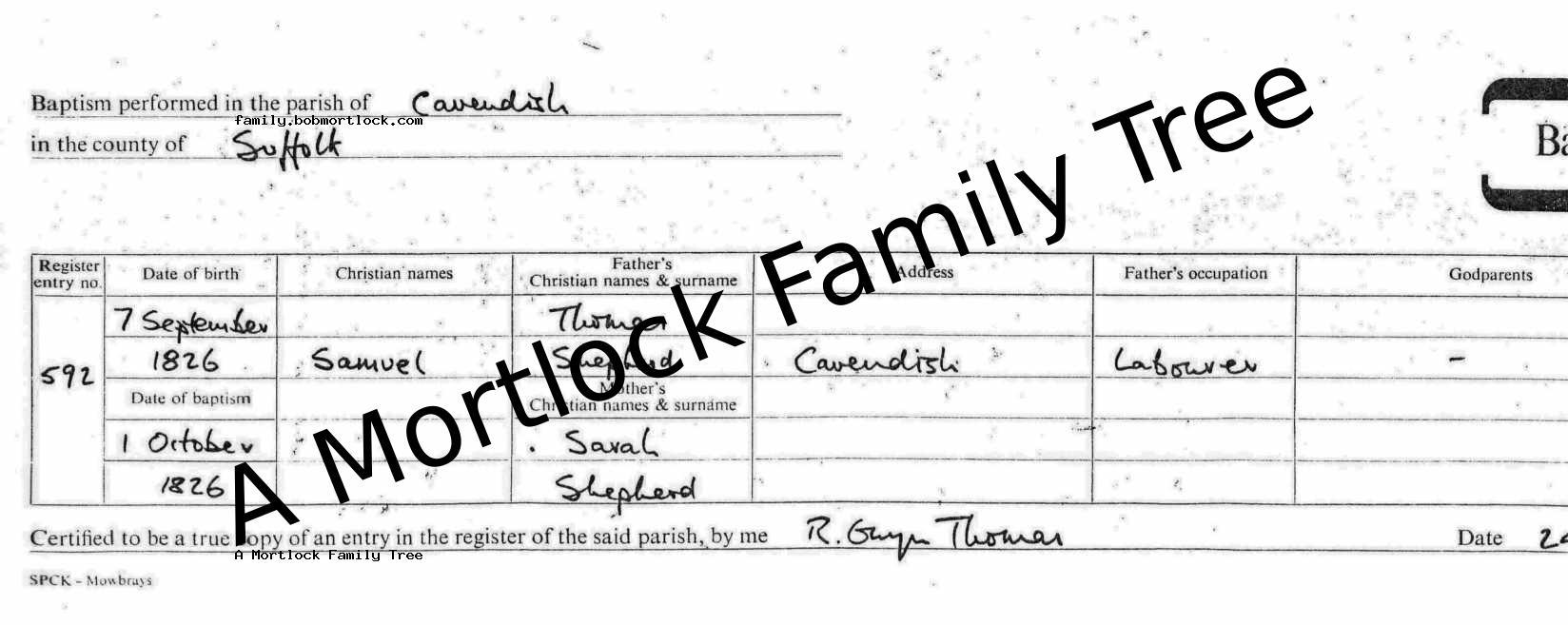 | Baptism | 1 October 1826 (Age 24 days) Cavendish, Suffolk, England Address: St Mary |