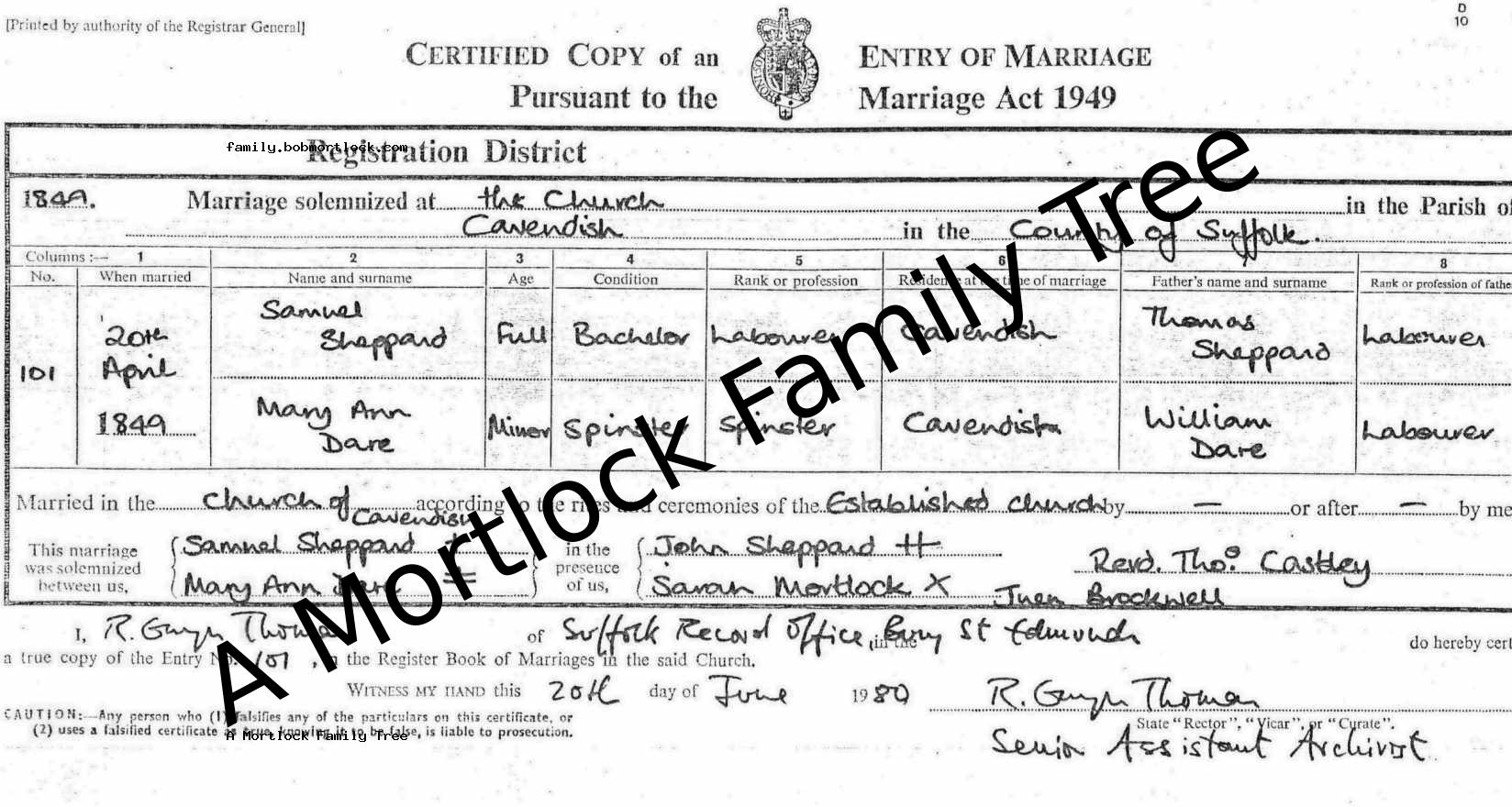 | Religious Marriage | Mary Ann DARE - View family 20 April 1849 (Age 22) Cavendish, Suffolk, England Address: St Mary