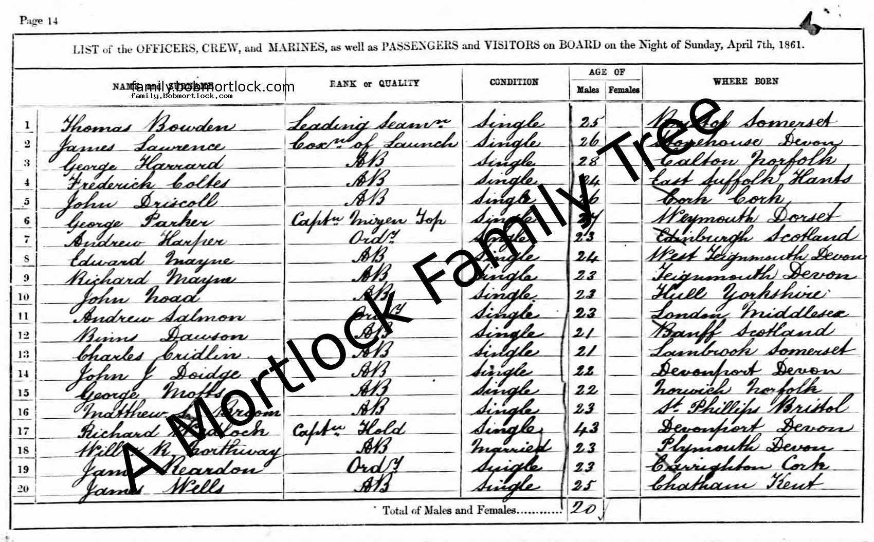 | Census | 7 April 1861 (Age 22) Vessels, Royal Navy Address: Narcissus |