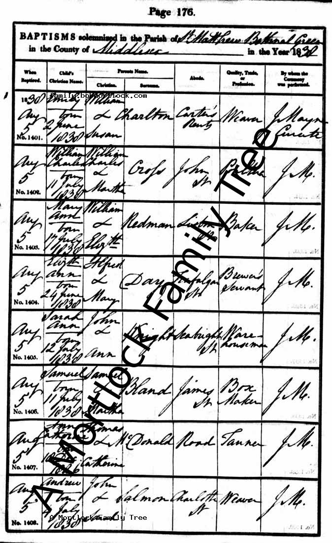 | Marriage of a Sister | Mary Ann SALMON - View family 7 September 1846 (Age 8) Bethnal Green, E London, England