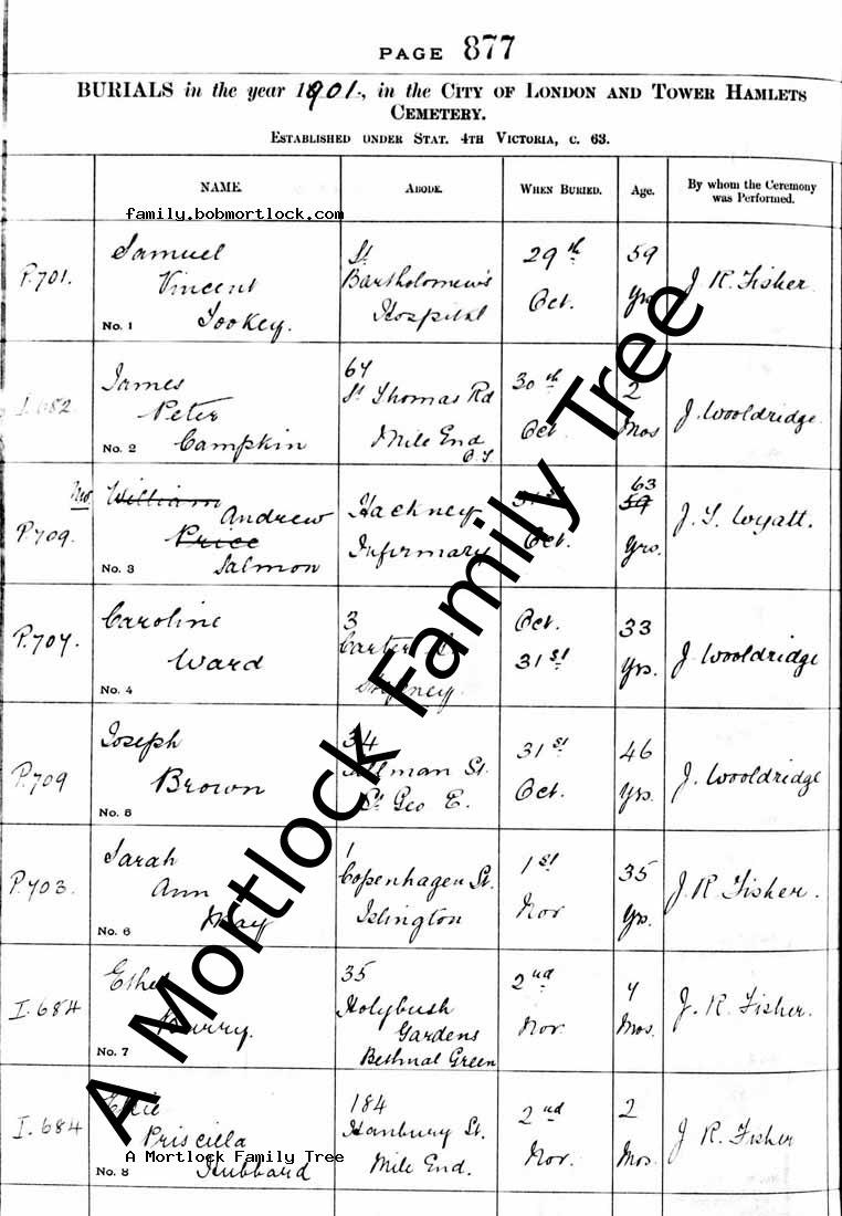 | Burial | 31 October 1901 (Age 63) Tower Hamlets, E London, England Address: City of London & Tower Hamlets Cemetery |