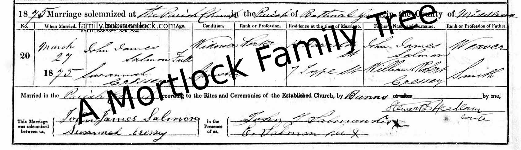| Marriage of a Brother | Andrew SALMON - View family 8 March 1870 (Age 48) Bethnal Green, E London, England
