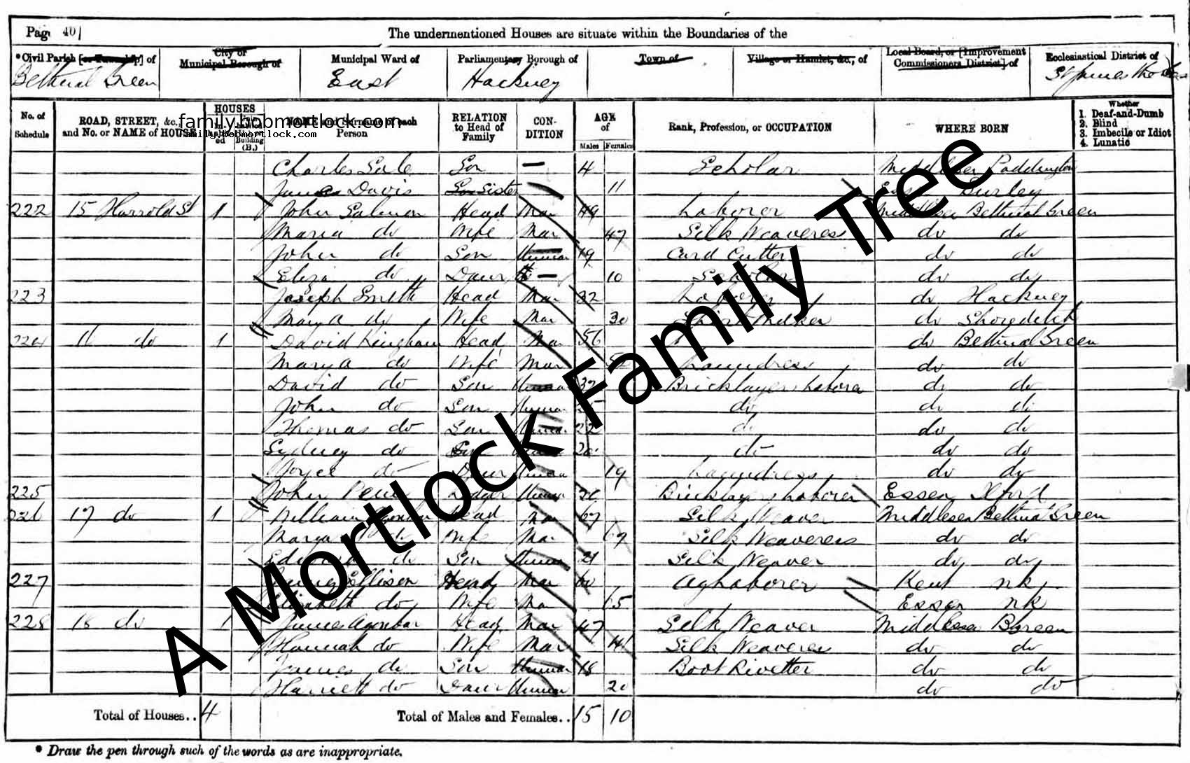 | Census | 2 April 1871 (Age 49) Bethnal Green, E London, England Address: 15 Harold Street