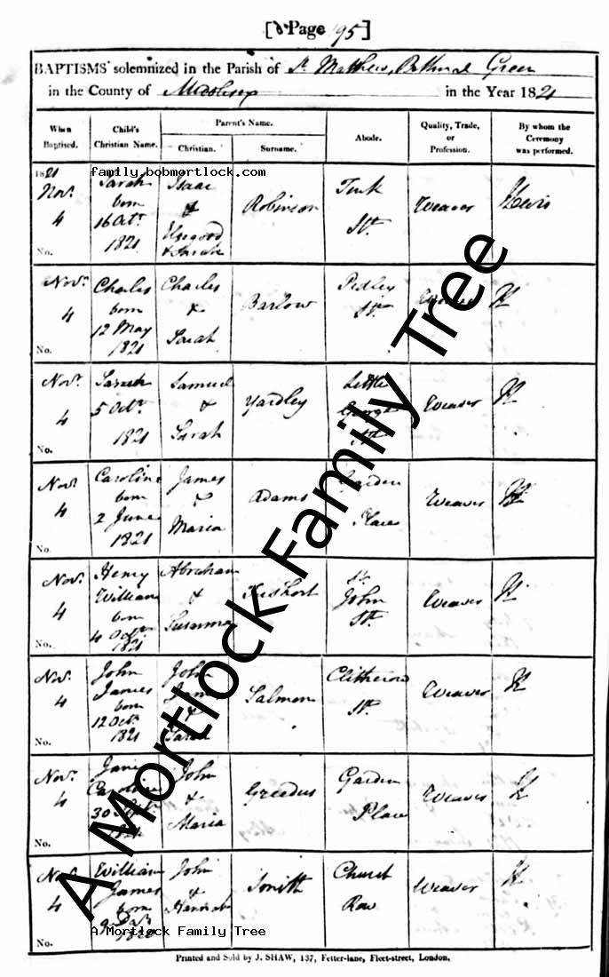 | Baptism of a Brother | 18 March 1832 (Age 10) Bethnal Green, E London, England