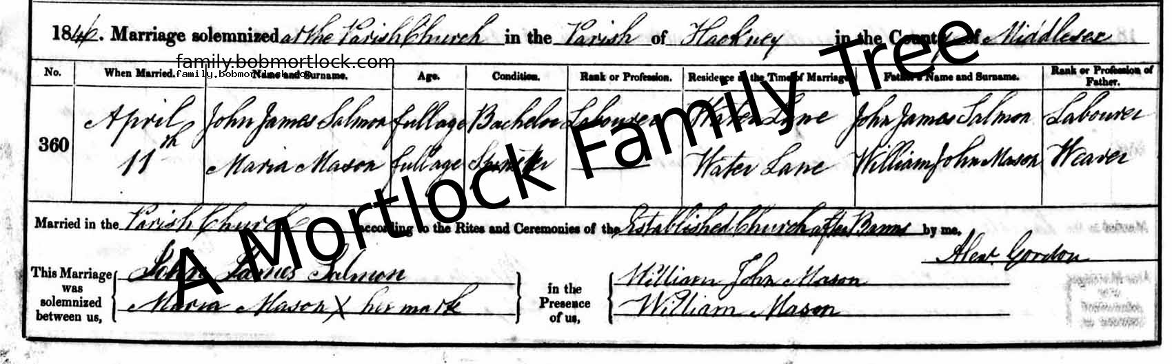 | Religious Marriage | Maria MANSON - View family 1846 (Age 24) Hackney, E London, England Address: The Parish Church |