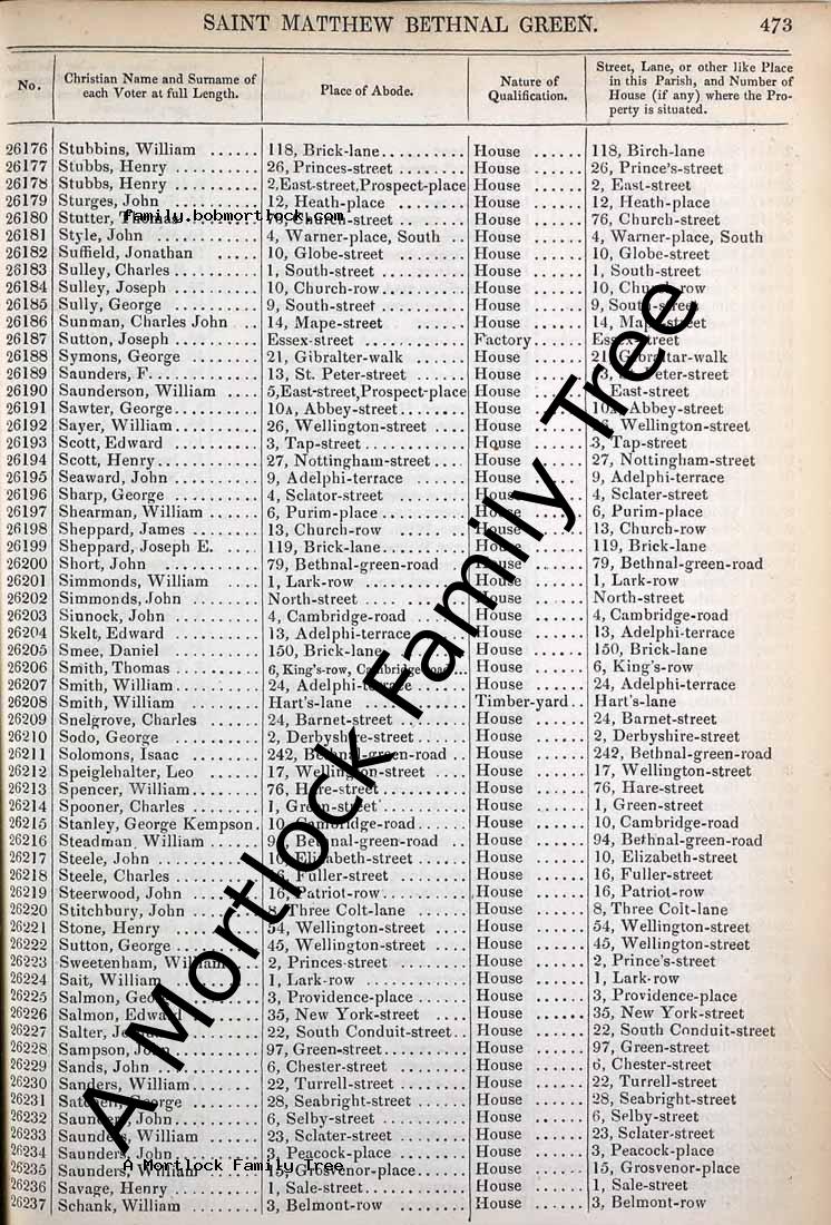 | Poor Law | 1847 (Age 22) Bethnal Green, E London, England Address: 7 Manchester Street |