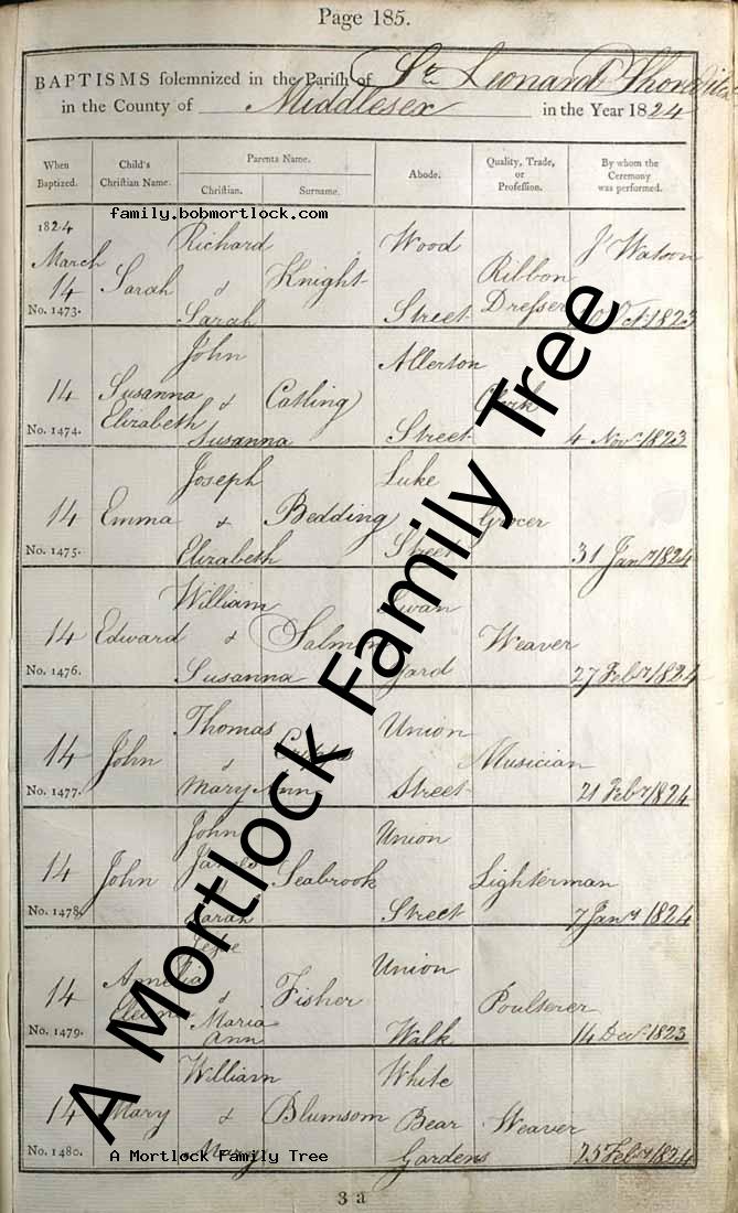 | Baptism | 14 March 1824 (Age 16 days) Shoreditch, E London, England Address: St Leonard |