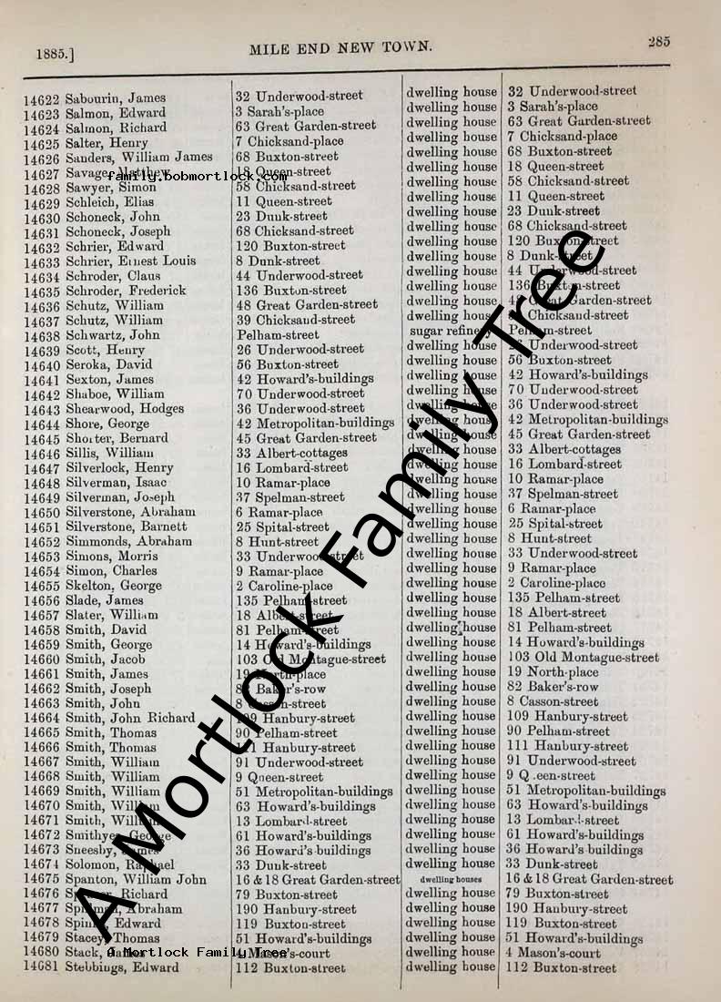 | Death | 1885 (Age 60) Mile End New Town, E London, England Address: 3 Sarahs Place |