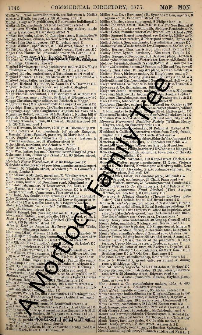 | Occupation | Merchant 1875 (Age 37) City of London, England Address: 27 & 28 Fenchurch Street Employer: Moffatt & Co |