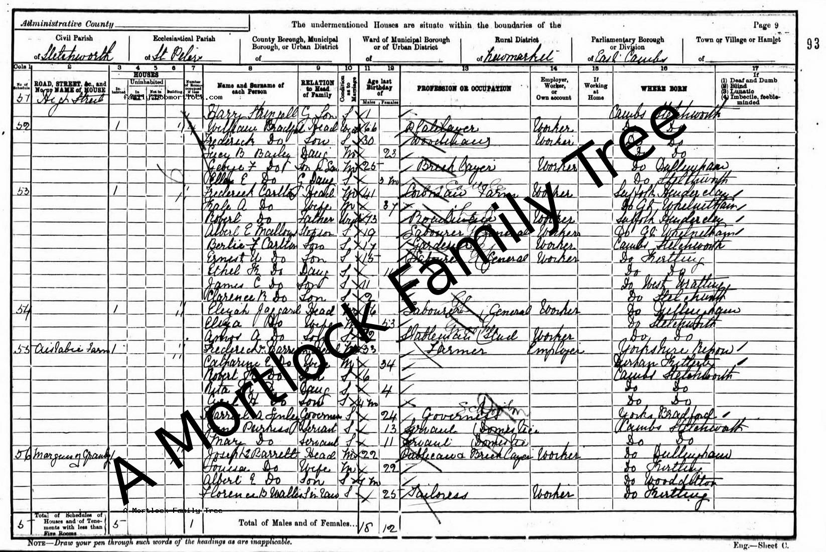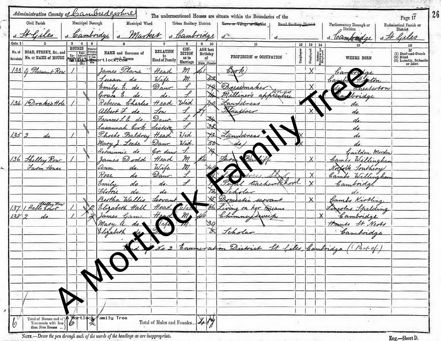 | Census | 5 April 1891 (Age 14) St Giles, Cambridgeshire, England Address: Shelley Row Farm House