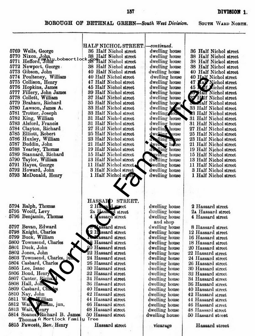 | Census | 3 April 1881 (Age 36) Bethnal Green, E London, England Address: 12 Half Nichol Street