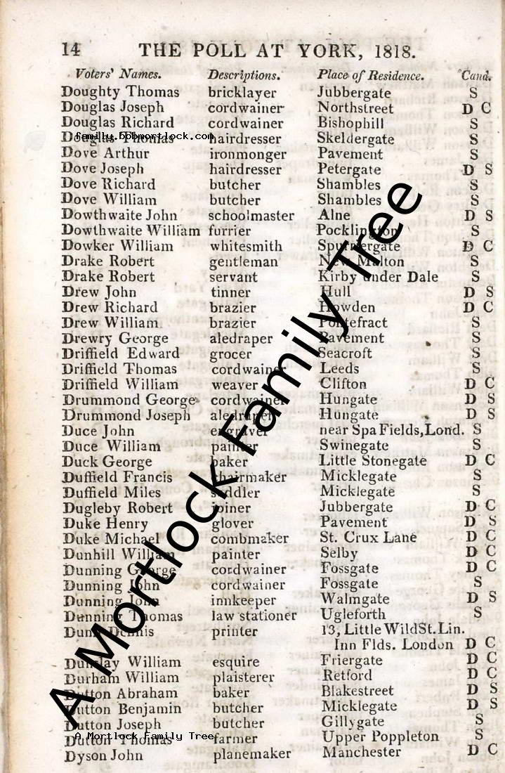 | Residence | 1807 (Age 38) York, Yorkshire, England Address: Shambles |