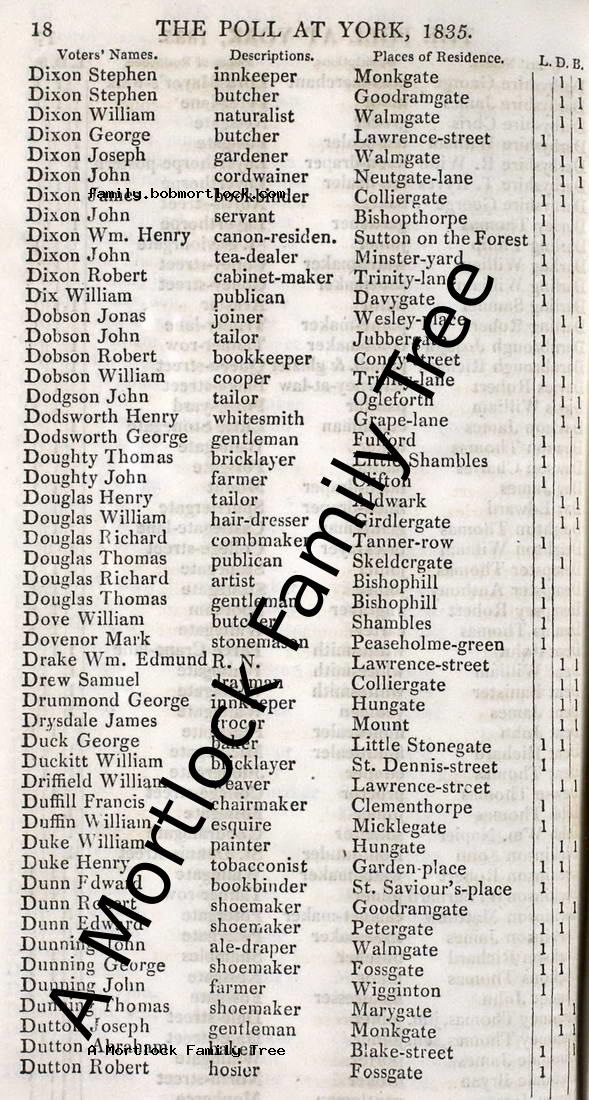 | Residence | 1835 (Age 66) York, Yorkshire, England Address: Monkgate |