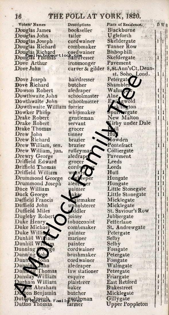 | Residence | 1820 (Age 51) York, Yorkshire, England Address: Gillygate |