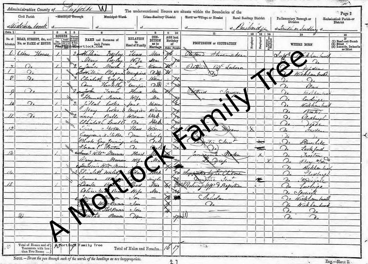 | Census | 3 April 1881 (Age 68) Wickhambrook, Suffolk, England |