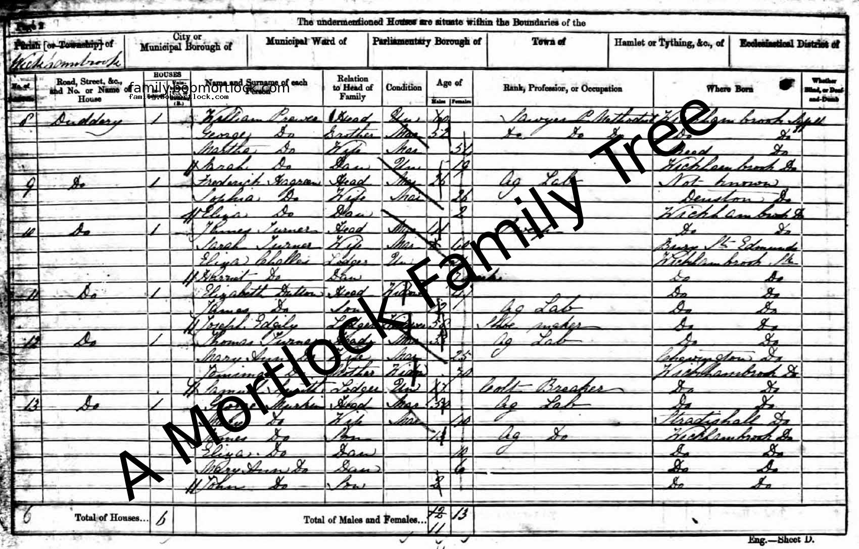 | Census | 7 April 1861 (Age 48) Wickhambrook, Suffolk, England Address: Duddery