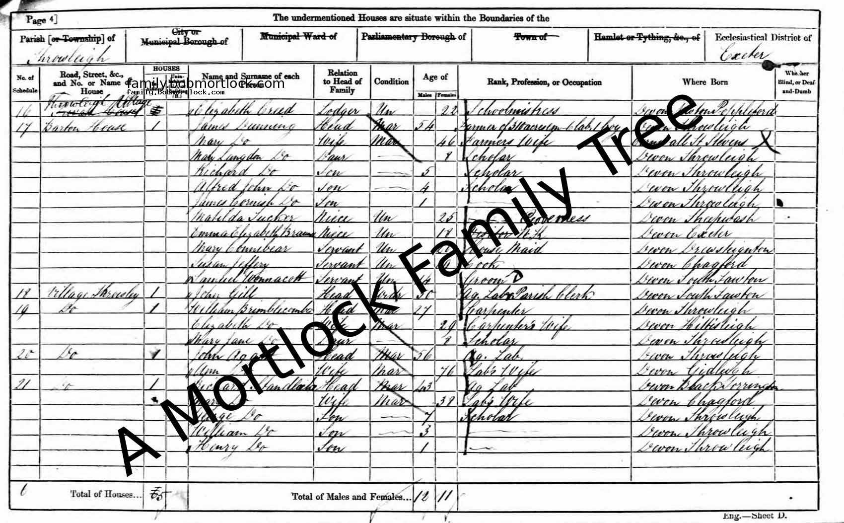 | Census | 30 March 1851 (Age 46) Throwleigh, Devon, England |