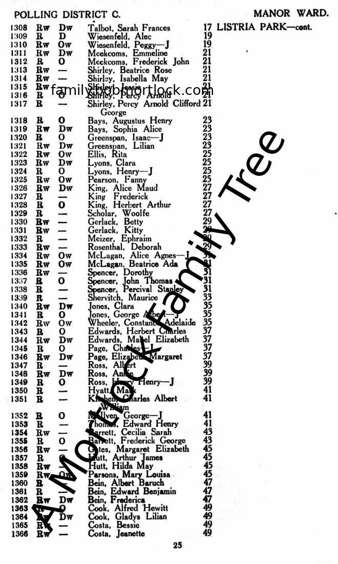 | Electorial Register | 1935 (Age 20) Hackney, E London, England Address: 23 Listria Park |
