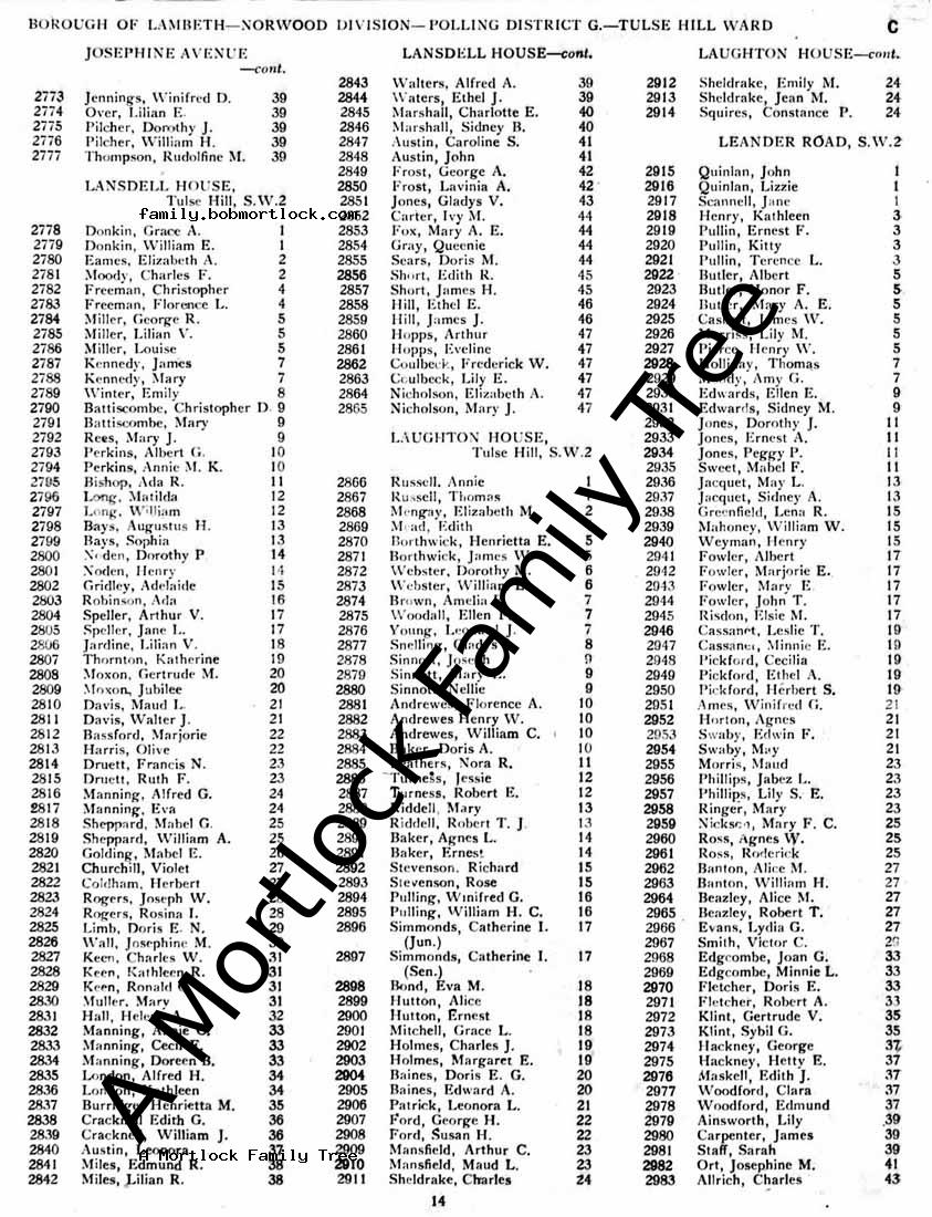 | Electorial Register | 1945 (Age 30) Norwood, Surrey, England Address: 13 Lansdell House, Tulse Hill |