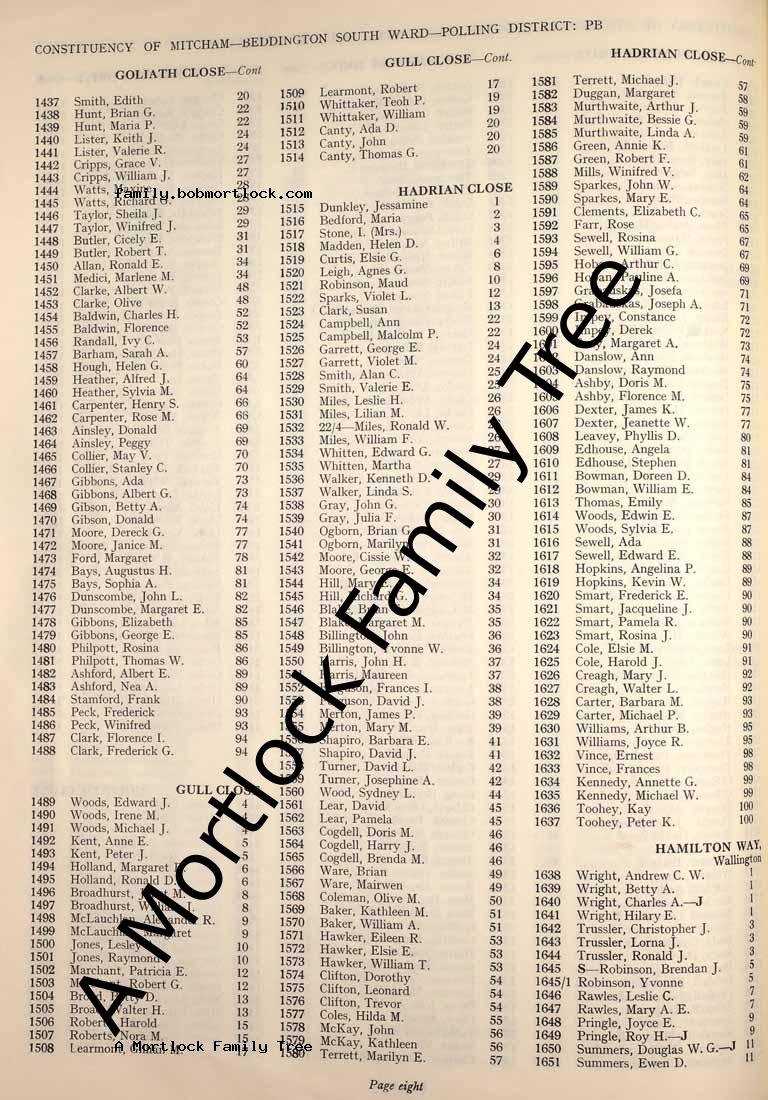 | Electorial Register | 1949 (Age 34) Norwood, Surrey, England Address: 12 Laughton House, Tulse Hill |