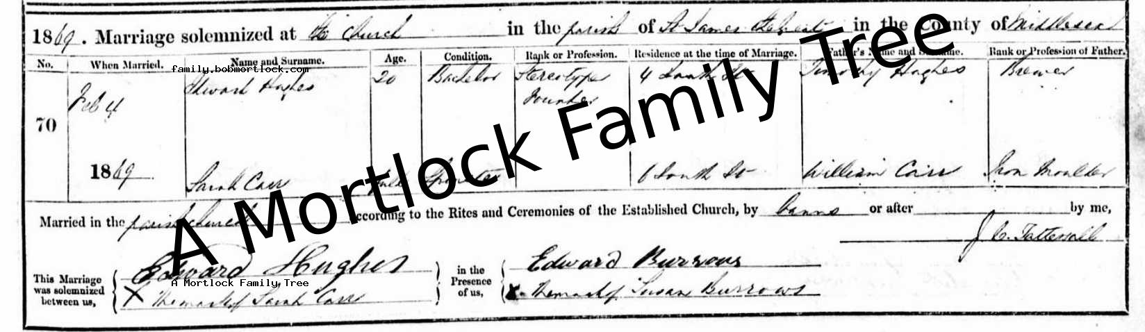 | Religious Marriage | Edward HUGHES - View family 4 February 1869 (Age 21) Address: St James in the East