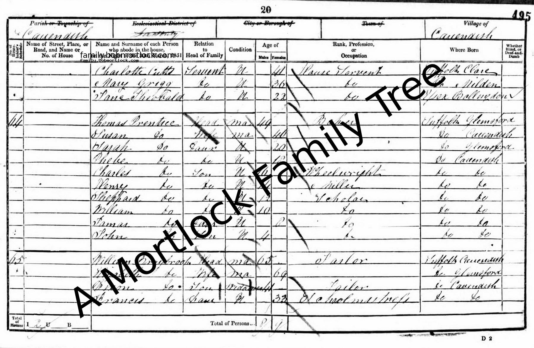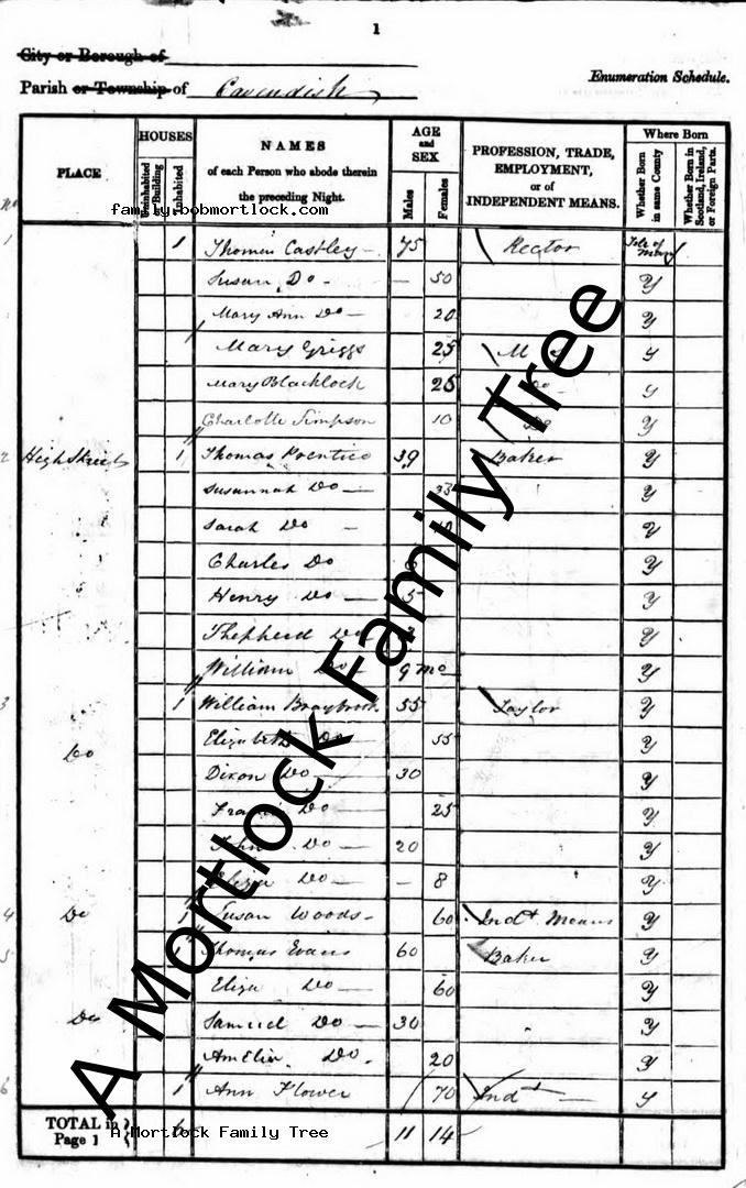 | Census | 30 March 1851 (Age 49) Cavendish, Suffolk, England Address: High Street