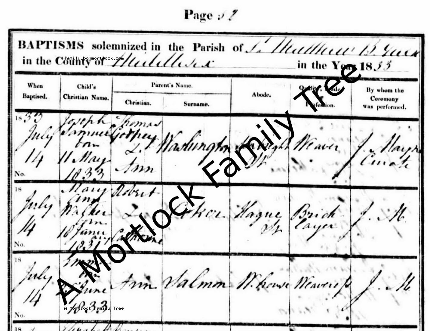| Baptism | 14 July 1833 (Age 19 days) Bethnal Green, E London, England |