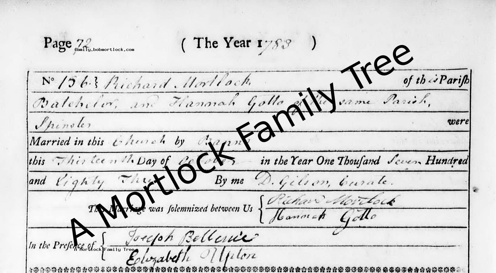 | Marriage of a Son | William Henry MORTLOCK - View family 15 October 1810 (Age 45) Lambeth, S London, England