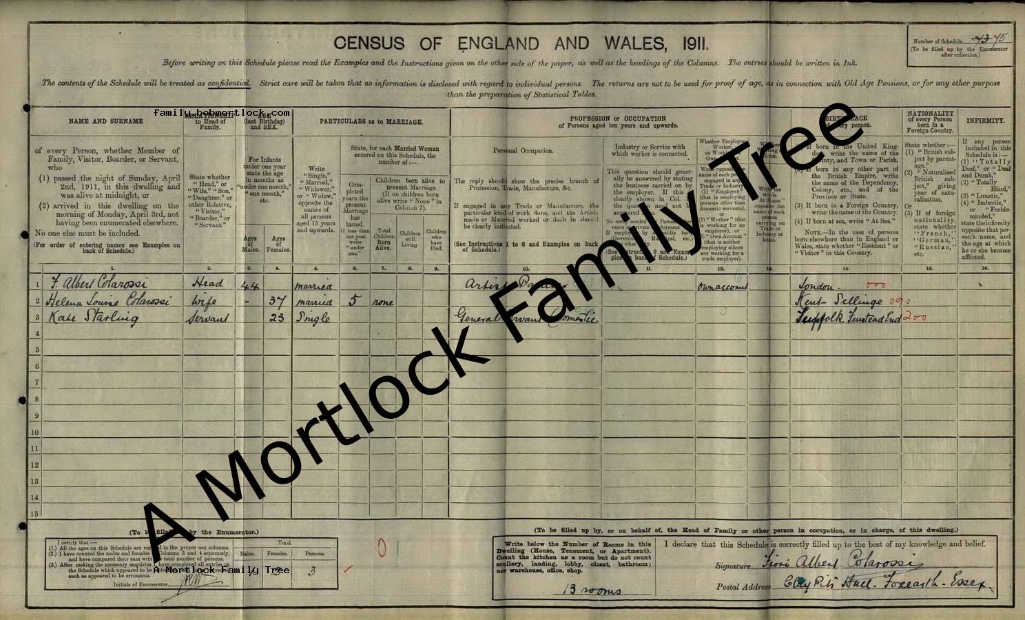 | Census | 2 April 1911 (Age 23) Foxearth, Essex, England Address: Clay Pits Hall