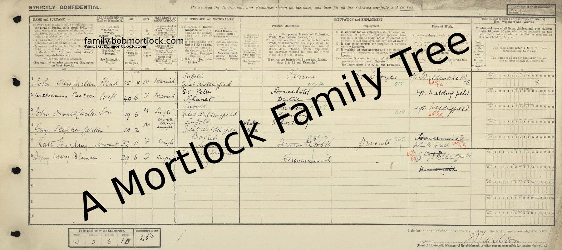 | Census | 19 June 1921 (Age 33) Great Waldingfield, Suffolk, England Address: White Hall, Gt Waldingfield