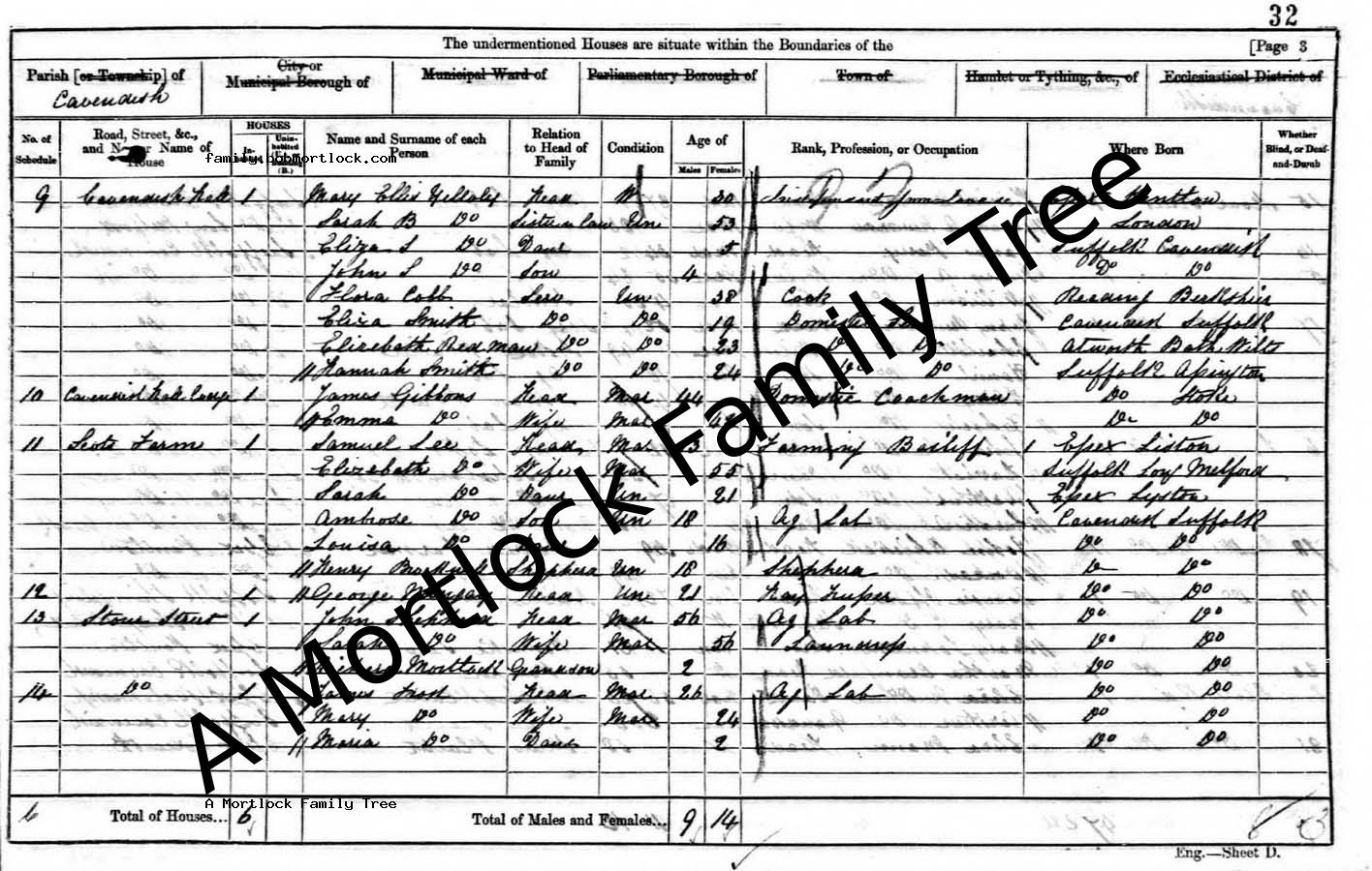 | Census | 6 June 1841 (Age 43) Cavendish, Suffolk, England Address: Pocky Hall