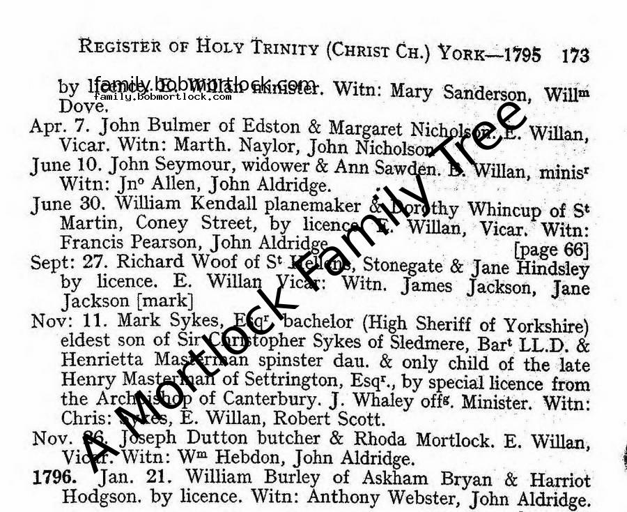 Religious Marriage: 26 November 1795 — York, Yorkshire, England |