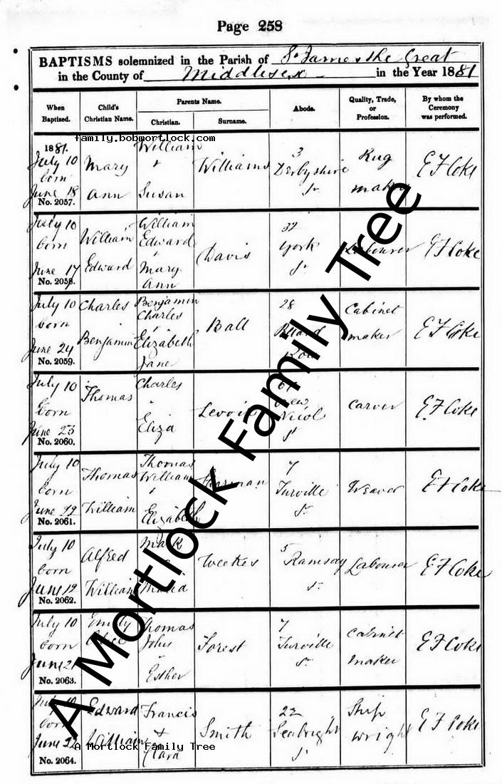 | Baptism | 10 July 1881 (Age 22 days) Bethnal Green, E London, England Address: St James the Great |