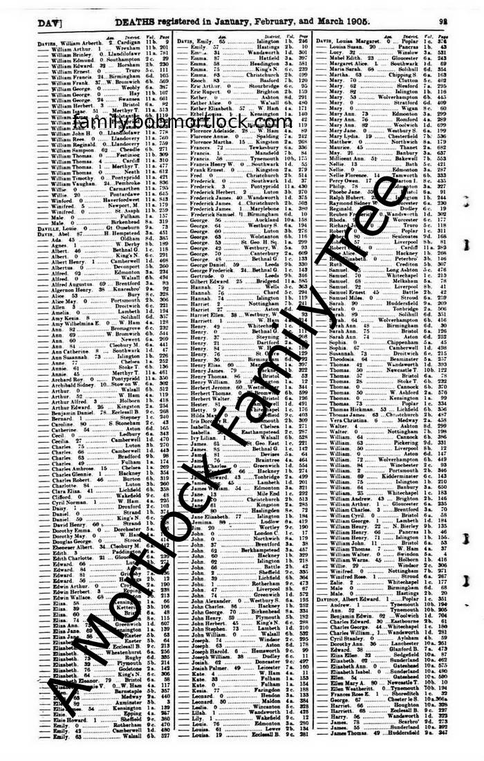 | Death of a Wife | 1905 (on the date of death) Hackney, E London, England