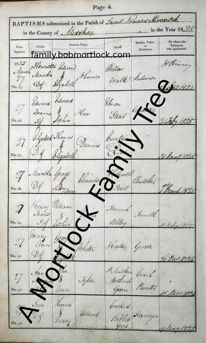 | Baptism | 27 March 1825 (Age 37 days) Shoreditch, E London, England Address: St Leonard |