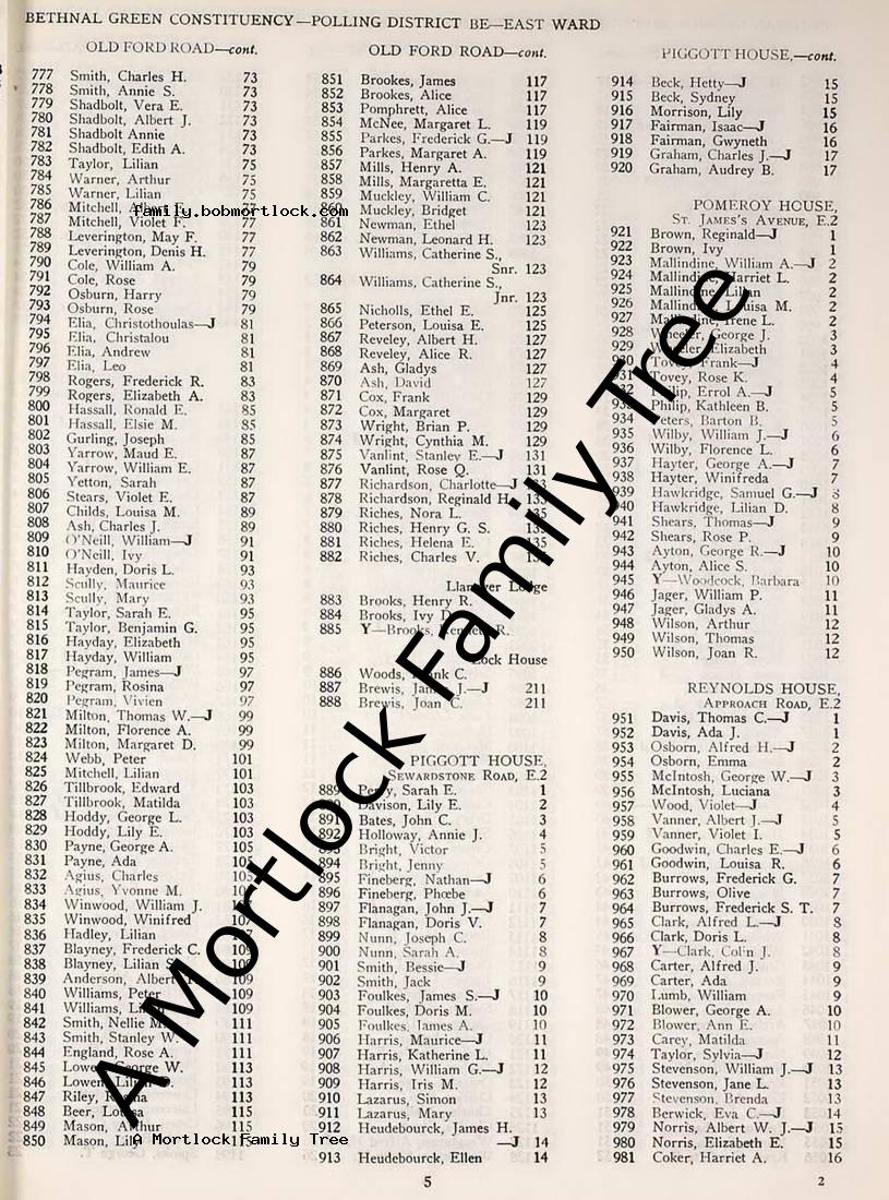 | Residence | 1945 (Age 32) Bethnal Green, E London, England Address: 127 Old Ford Road |