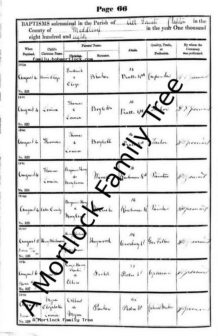 | Baptism | 4 August 1880 (Age 7) Hackney, E London, England Address: Clapton Park - All Saints |