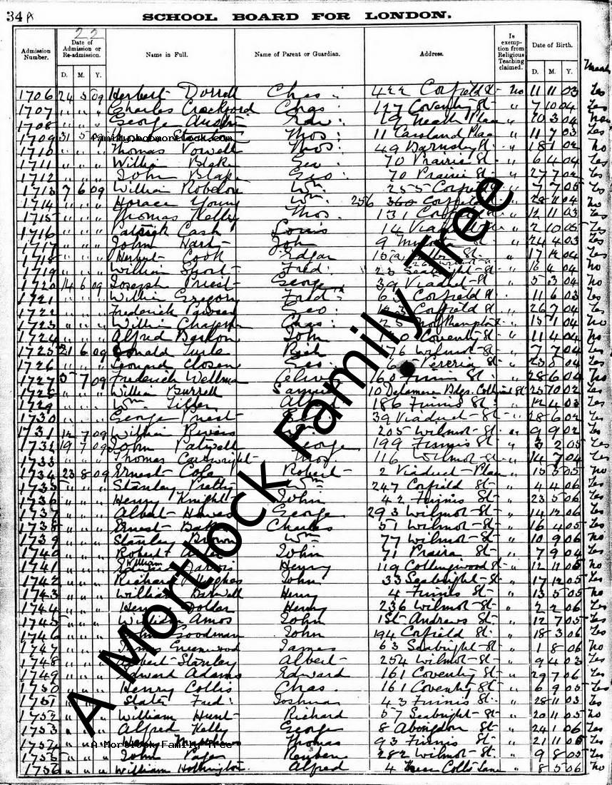 | Education | Admission 14 June 1909 (Age 5)School or College: Wilmot Street School Note: Renamed Wilmot Primary School in 1951 |