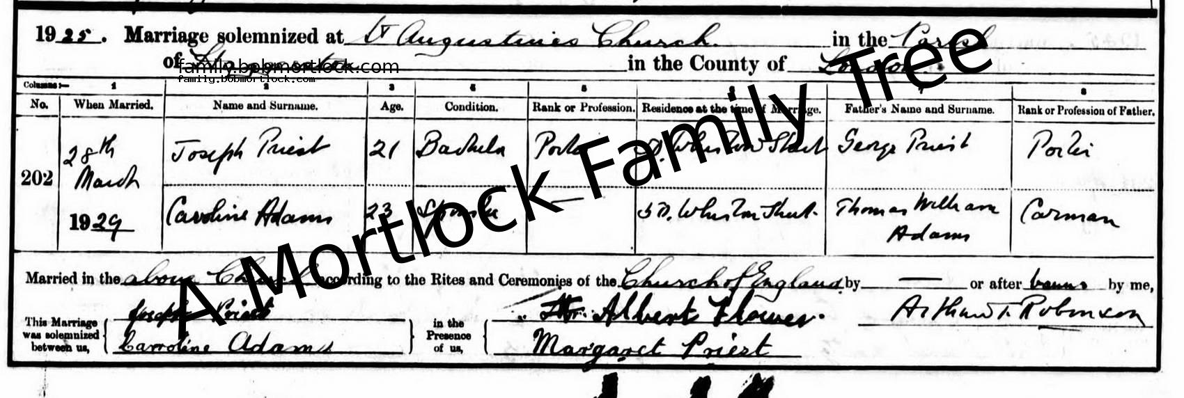 | Religious Marriage | Caroline ADAMS - View family 28 March 1929 (Age 25) Haggerston, E London, England Address: St Augustine