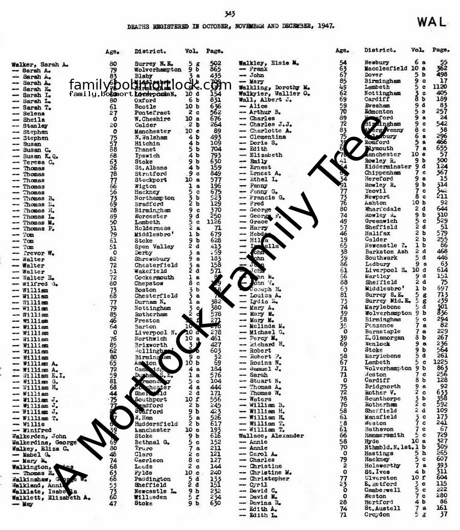 | Probate | 6 December 1947 (22 days after death) London, England Note: Effects: £600 6s 2d to Rosaline Walkerdine widow. |