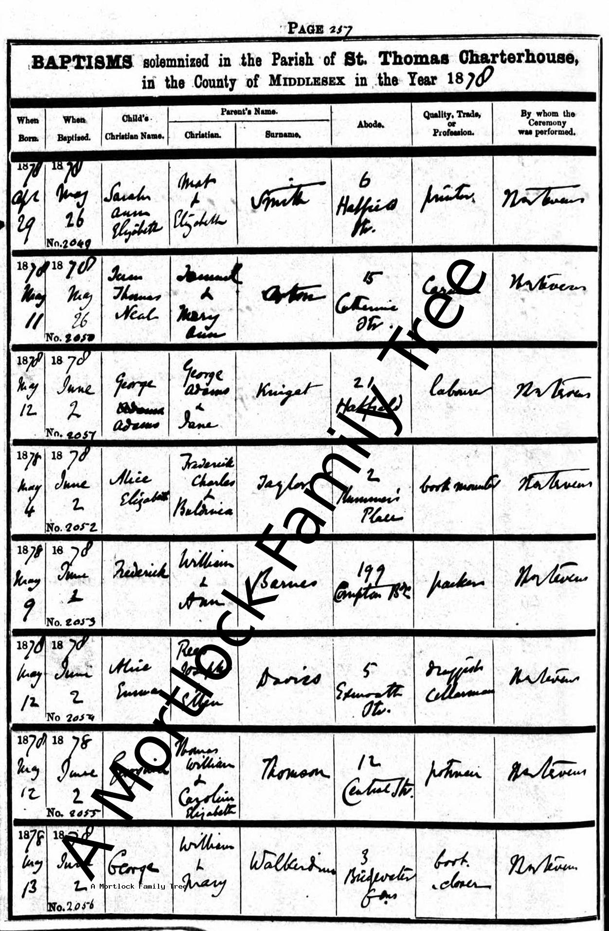 | Baptism | 2 June 1878 (Age 20 days) Islington, N London, England Address: St Thomas, Charterhouse |