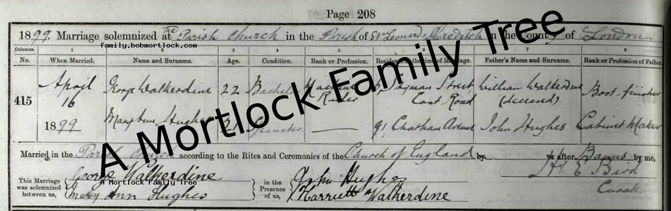 Religious Marriage: 16 April 1899 — Shoreditch, E London, England |