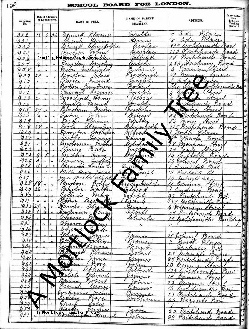 | Education | Admission 28 April 1896 (Age 5)School or College: Pritchards Road School |