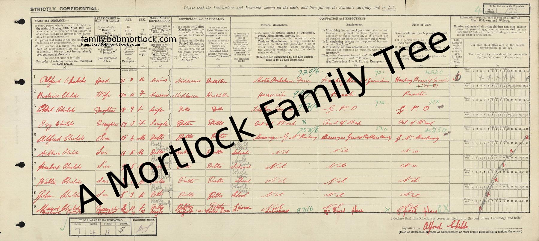 | Census | 19 June 1921 (Age 15) Hackney, E London, England Address: 79 Wick Road