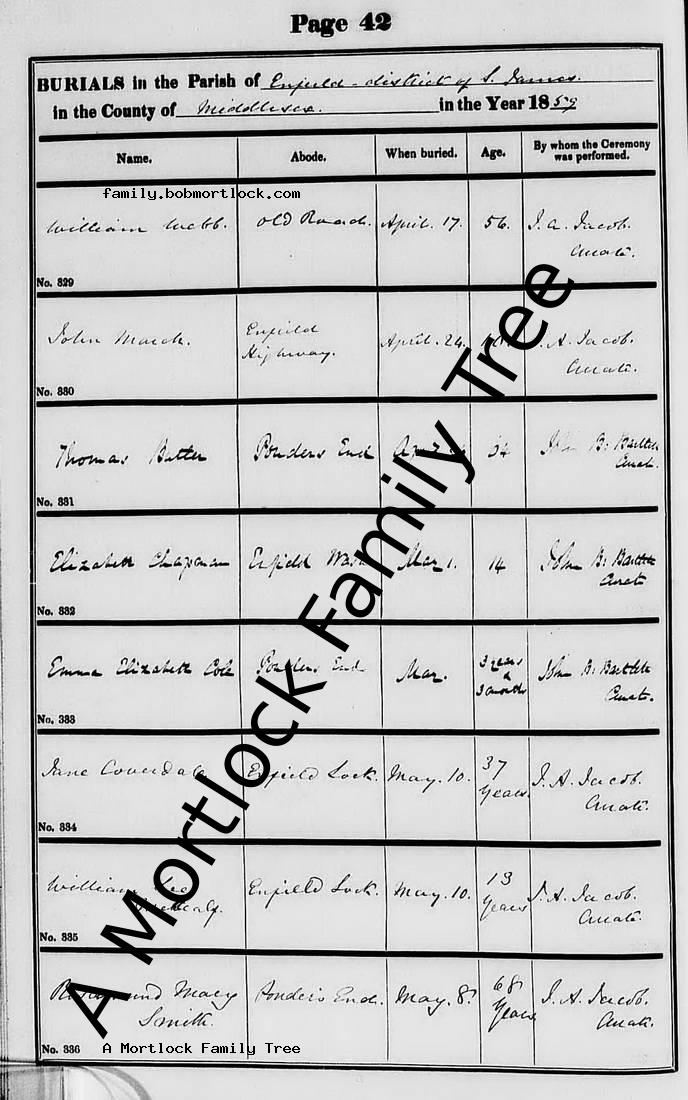 | Burial | 10 May 1859 (Age 37) Enfield, Middlesex, England Address: St James |