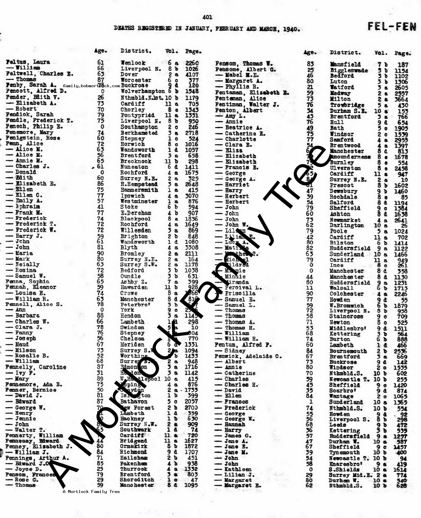 | Death of a Maternal Grandmother | 1908 (Age 26) Oundle, Northamptonshire, England