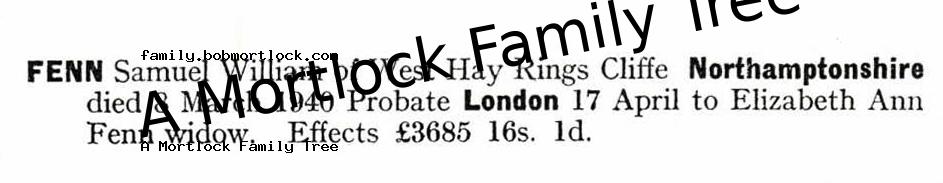 | Death of a Maternal Grandfather | 1907 (Age 25) Oundle, Northamptonshire, England