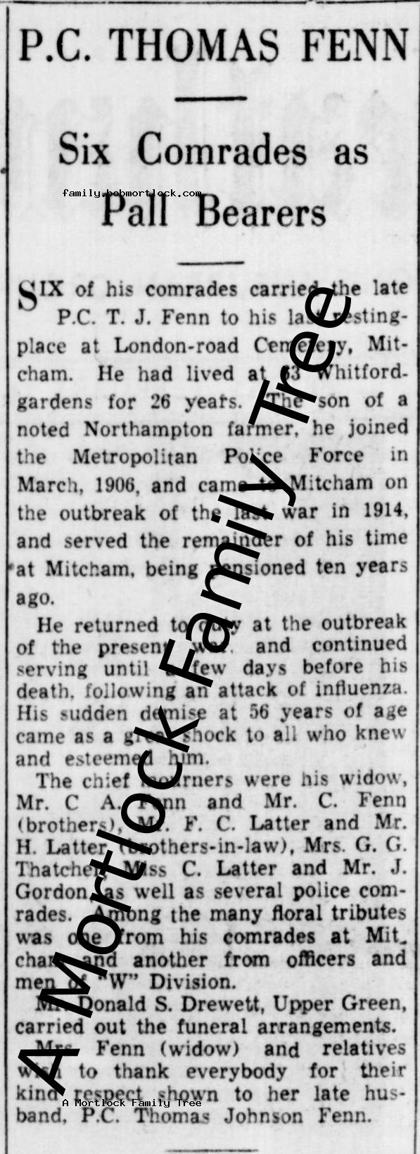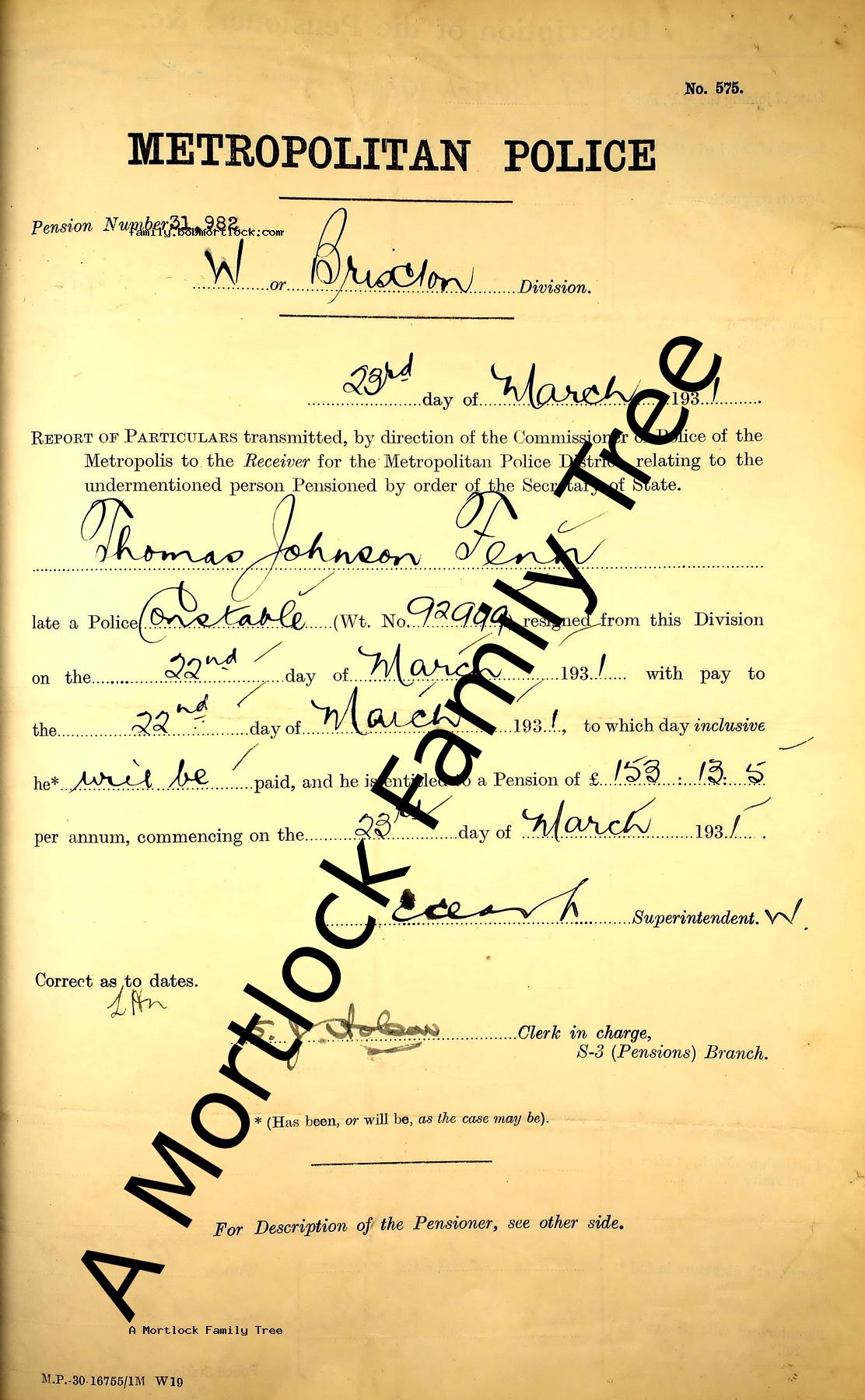 | Occupation | Retirement from Police Force 23 March 1931 (Age 46)Employer: Metropolitan Police |